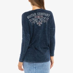 Guitar Company Ladies Fit Tee with Crown Guitar Design in Blue