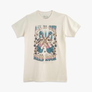 Music Festival All Is One Crossed Guitars Crewneck Tee in Beige